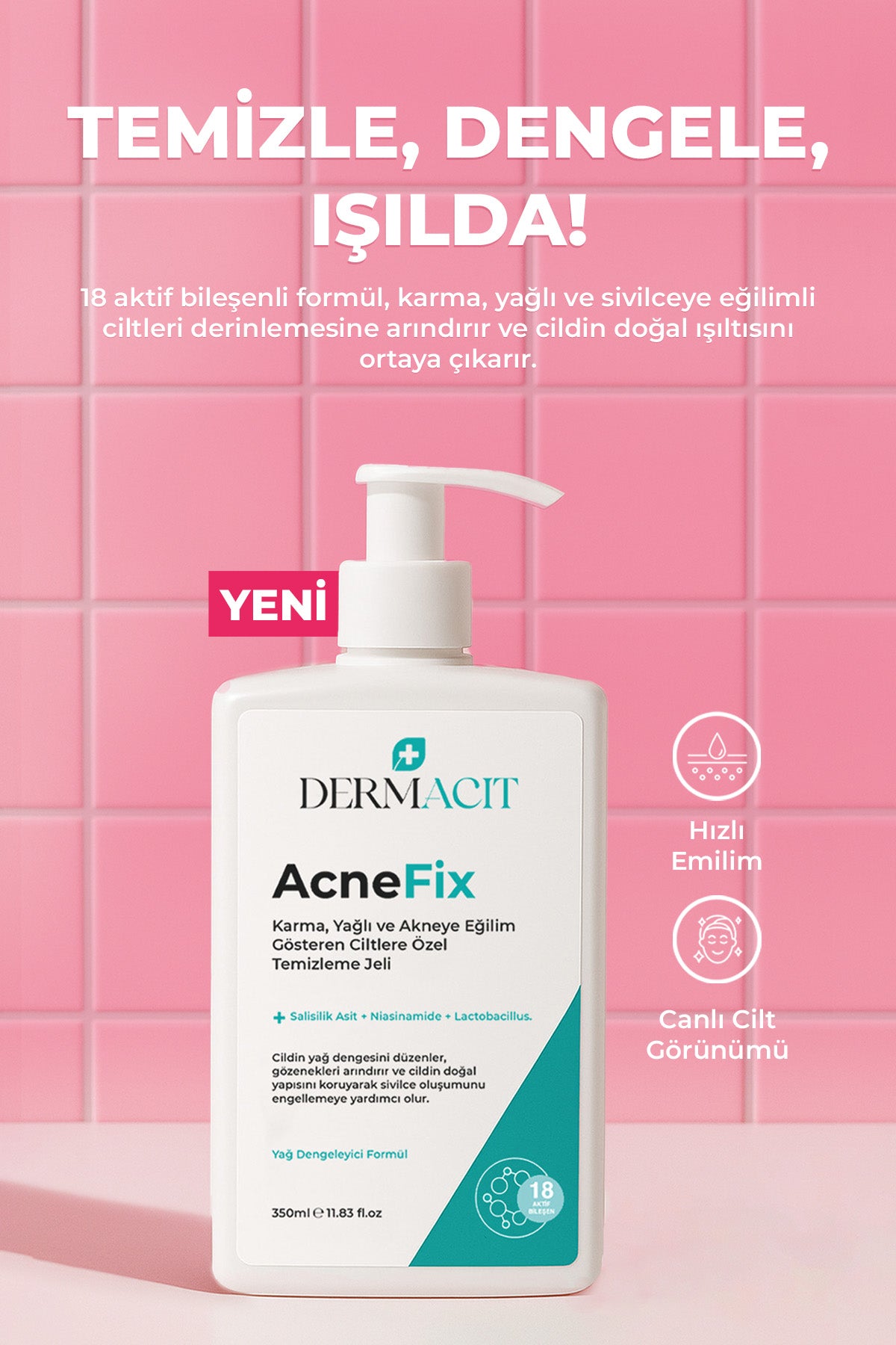 Dermacit ürünleri, birden fazla cilt ihtiyacına aynı anda çözüm sunar. Nemlendirme, leke karşıtı bakım, gözenek sıkılaştırma ve antioksidan koruma gibi birçok faydayı tek bir üründe buluşturur. Pratik ve etkili çözümlerle cilt bakımını kolaylaştırıyoruz.Cildinizle Uyumlu Akıllı Formüller