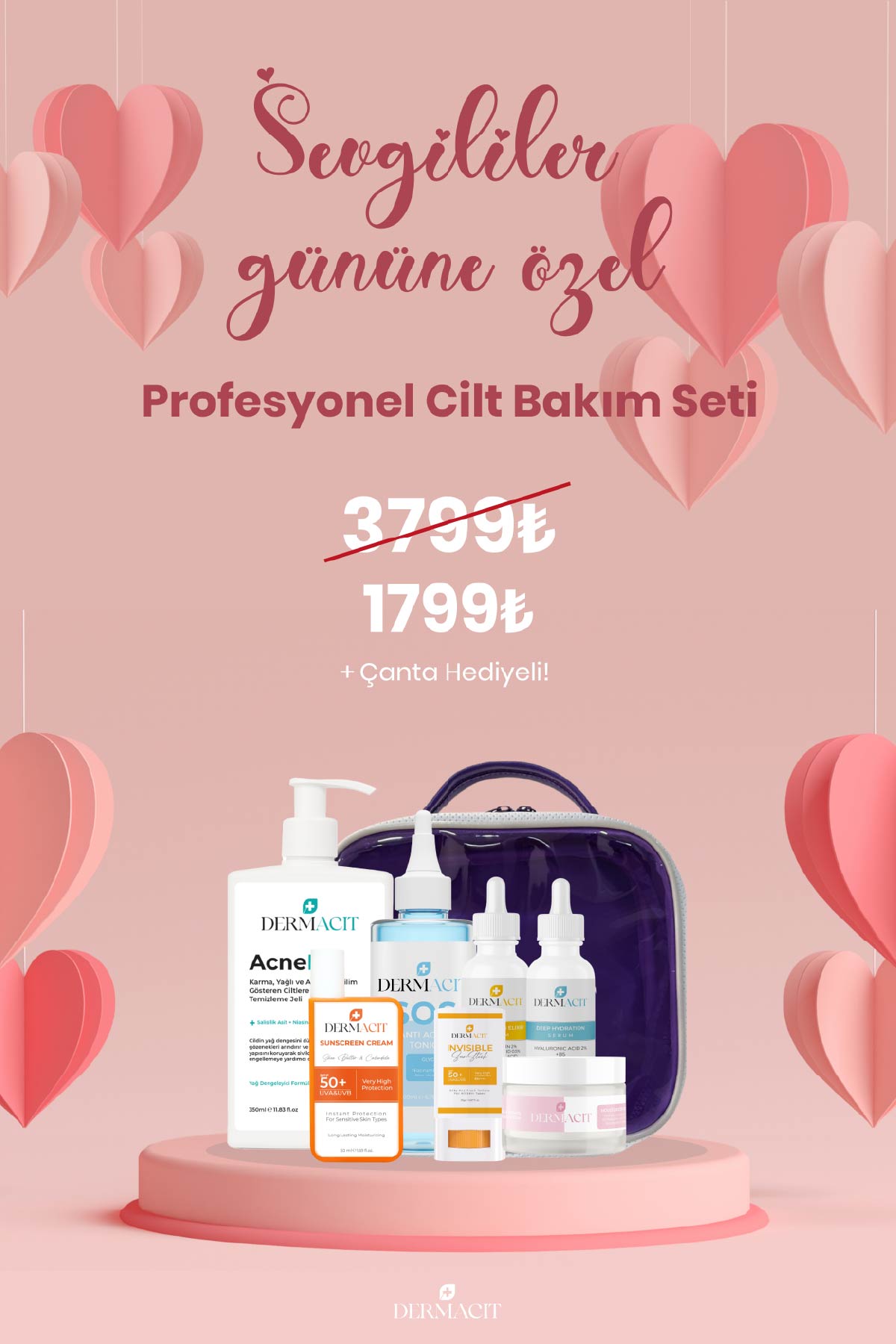 Dermacit ürünleri, birden fazla cilt ihtiyacına aynı anda çözüm sunar. Nemlendirme, leke karşıtı bakım, gözenek sıkılaştırma ve antioksidan koruma gibi birçok faydayı tek bir üründe buluşturur. Pratik ve etkili çözümlerle cilt bakımını kolaylaştırıyoruz.Cildinizle Uyumlu Akıllı Formüller